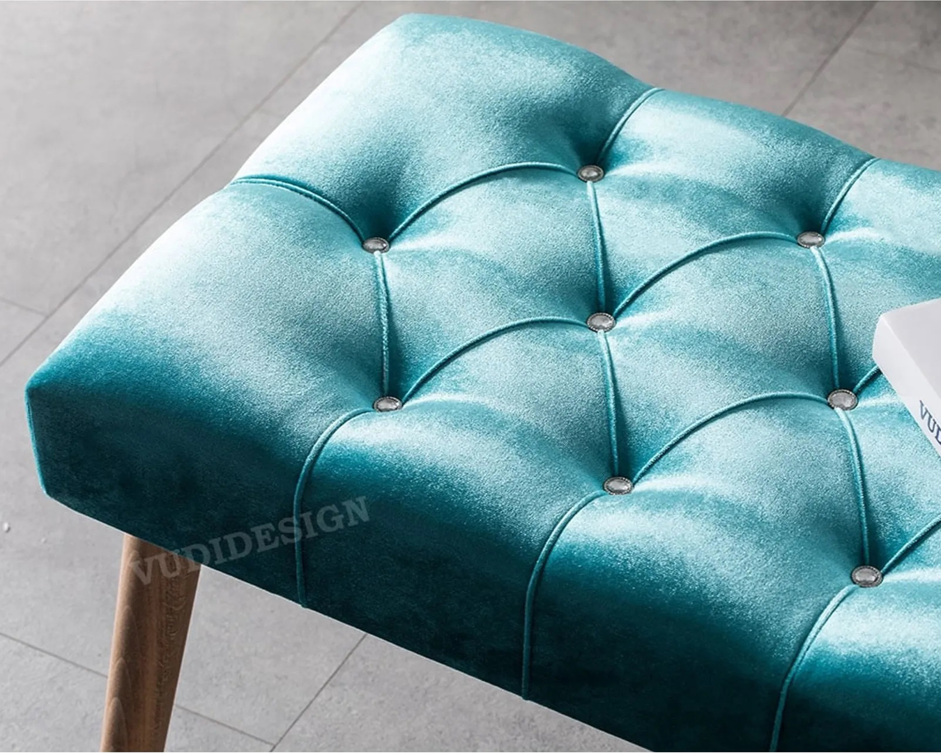| Feature | It is made of wood material with Shiny Velvet Fabric and easy wipeable. 18 density sponge was used in the seat cushion. |