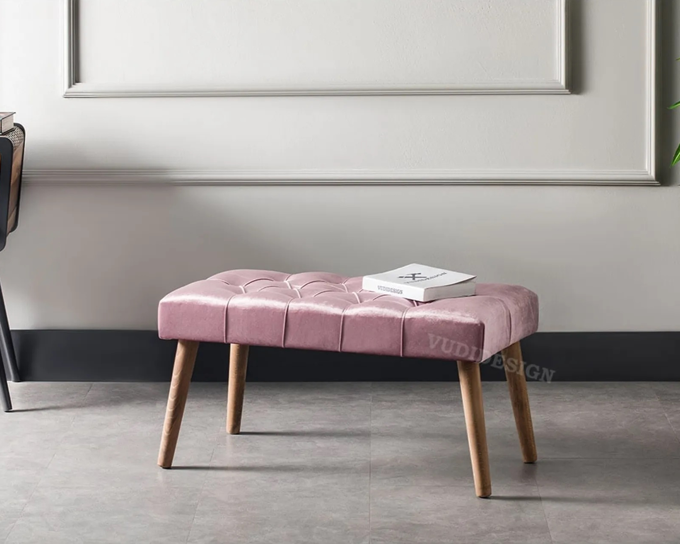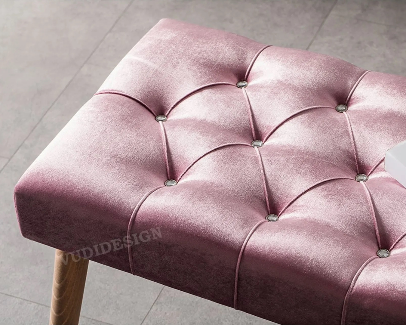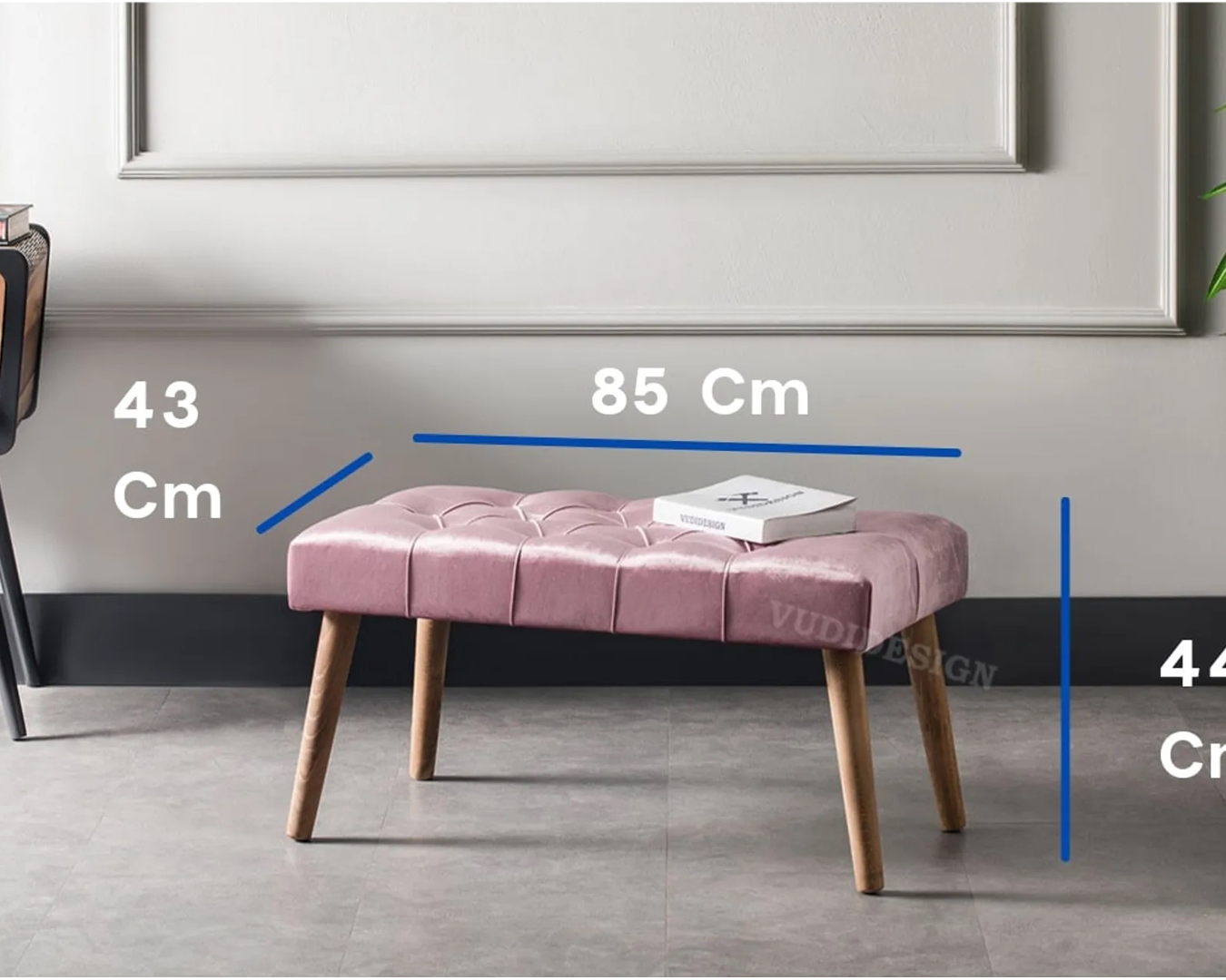 | Feature | It is made of wood material with Shiny Velvet Fabric and easy wipeable. 18 density sponge was used in the seat cushion. |