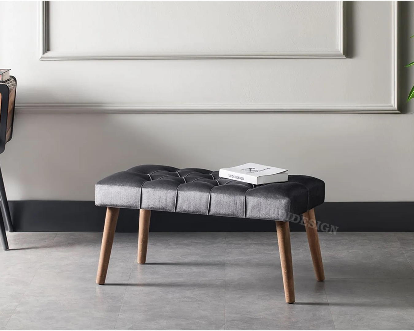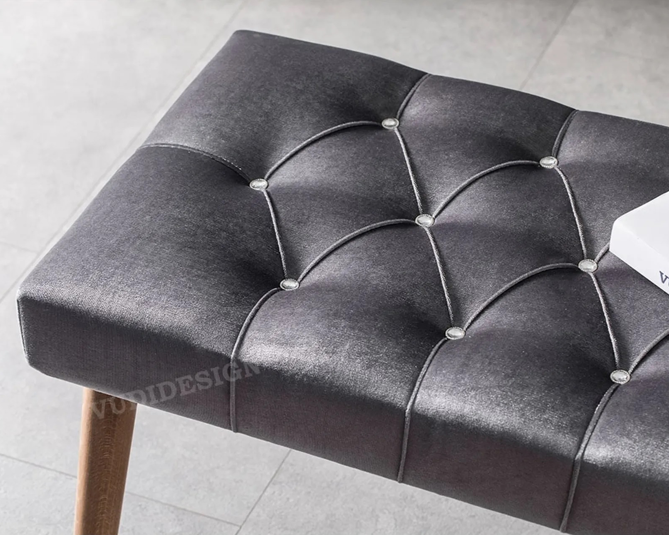 | Feature | It is made of wood material with Shiny Velvet Fabric and easy wipeable. 18 density sponge was used in the seat cushion. |